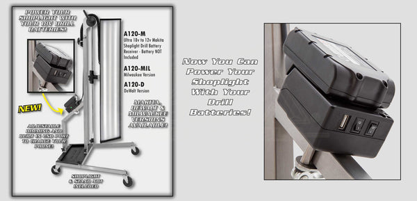 Power up to 3 36" strips of LED with Dewalt Battery. 3 amp 12 v Output that will power your large LED hail lights.  It has built in battery gauge that is green when full and turns red when battery is low warning you when its time to charge. Comes with Built in PWM Dimmer that will convert any light into a dimmable light.  We also included a 2 amp usb output so you can fast charge your mobile devices.  The built in Quick Clamp is design to mount to Ultra Dent Tools Hail stands.