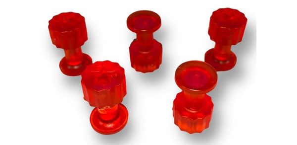 Anson UV Orange 12mm Convex glue tabs. They are engineered for strong pulls and low attrition rate. Made from orthopedic grade plastic new to our industry.  The PDR glue tabs...